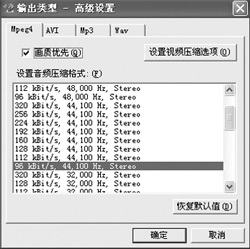 7、在转换格式的“高级设置”中选择文件的压缩格式,并设定压缩格式的各个参数(如图2)。