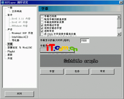 看电影用 DFX 过去我们使用 DFX音频插件是为了增强MP3的音质效果,现在在BSPlayer中,可以让你在看电影时也可以使用DFX。真得能实现吗?点击“选项→偏好设定”项,在“BSPlayer偏好设定”对话框中选中“声音”项下得“Winamp2 DSP外挂”选项,勾选“启用winamp DSP外挂”,并设定插件的安装目录,当然,前提是你的系统中已经安装了DFX插件。 修正字幕 在电影播放方面, BSPlayer最有特点的是它的字幕修正功能,通过字幕功能可以设置字幕的速度和延迟。在“BSPlayer偏好设定”对话框中选中“字幕”项(图4)对字型、色彩、延迟时间进行设置,这点在画面声音和字幕不同步时特别有效。除了对字幕设置外,还可以对Dix文件进行优化处理,重置原来的Dix选项,如:影片效果、亮度和对比度等,优化完成后,占用CPU资源会显得特别少。