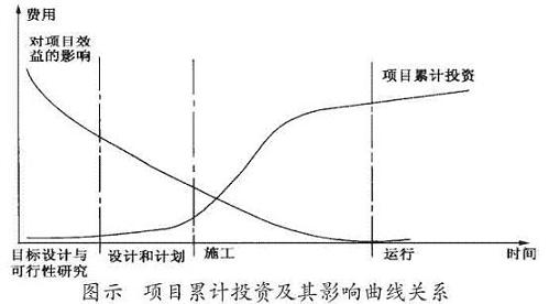 对国内外投资项目多年的建设实践证明,即使耗费一定资金进行的可行性研究证明项目不可行,也胜于不做可行性研究就盲目进行项目建设投资。其中的道理我们可从下面有关项目累计投资及其影响的关系图中清楚地看出。