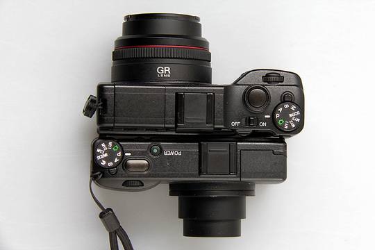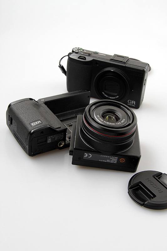 同样的焦段,GXR和同门的GRD III对比,GXR要稍微大一些。由于传感器尺寸的区别,2者之间的画质自然也是相差不少。