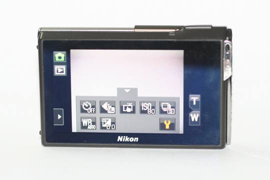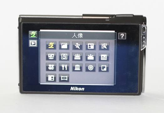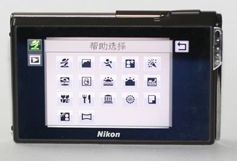 S80采用OLED触摸屏,带有防反射涂层,像素达81.9万,带宽视角,可进行直观操作,同时支持多点触摸,通过两只手指完成图片缩放。几天使用下来,笔者感觉这款相机的触摸屏的色彩表现不错,显示生动清晰,特别是近摄时,有利更为精确对焦。但是系统响应速度较慢,在光线较暗的情况下,使用触控快门容易错过拍摄时机。菜单的设置简洁直观,容易上手,通过底部和侧边的三角形触键,可以快速选择和改变常用的ISO、曝光补偿、白平衡、微距、闪光灯等;此外,在场景模式选择时,还很贴心地设置了帮助菜单,有利于用户选择更为精确的模式。