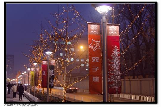 这是下班前在楼下随便拍的,快年底了,圣诞的气氛已经很浓了。白天恶心的雾霾,到了这时候倒是好看多了。