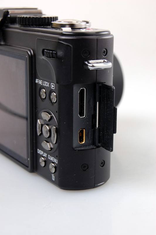 徕卡D-lux5的侧面设计非常简单,配置了目前主流的标准HDMI接口,同时,排列的位置也基本和松下LX5一样。