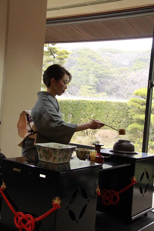 表演者衣着庄重,而举手投足缓慢而有力度,用一种流畅但柔中带刚的技法表现者茶道“和、敬、清、寂”文化。有人说日本茶道是佛道儒三家“内省修行”思想的完美体现。从感觉上来说,宁静安详是最为直观的感觉,这种刚表演让宾客在自然中保持宁静全神贯注的体会这种文化。