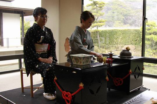 茶道中欣赏茶具的精致显然是茶道乐趣的一部分。陶器上的绘画无疑成为了一种只可神会不可言传的意趣。显然我们所看到的茶具并非是最精致。具导游说,通常宾客会带一些自己喜欢的茶具让以供大家欣赏。