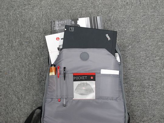 笔记本间隔能放下15.4寸笔记本电脑,A4大的文件。也拥有专用曼富图Pocket小脚架的袋子。