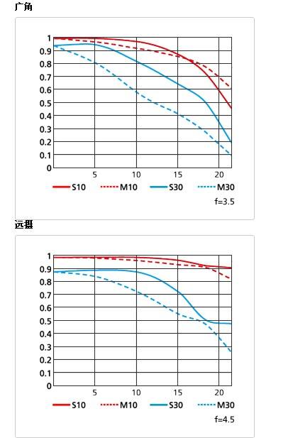 从图中可以看出F4-F8这款镜头表现最好,由于这款镜头最大光圈偏小,从全开光圈开始整体锐度都保持的不错,当然在F16之后可以看到锐度下降,所以建议用户还是慎用小光圈。