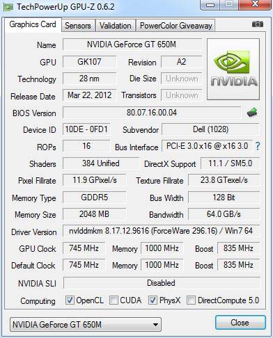Alienware M14XR2采用GT系列最高型号GT 650M独立显卡。该显卡采用了最新的Kepler(开普勒)架构,28nm的制程与之前500M系列40nm相比,可以让显卡能够在功耗不变的状态下大幅度提升3D图形性能,它拥有384个CUDA核心,频率为735MHz;配备2GB GDDR5的独立显存,128位位宽,显存频率为1000MHz,此数据大大提升了原先GDDR3显存颗粒在处理图形画面时的速度瓶颈。