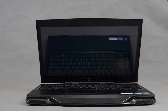 M14XR2的屏幕有一整块镜面玻璃覆盖,14寸屏幕具备1600×900的分辨率。此外屏幕与机身连接处采用双转轴设计,最大开合角度为130°。