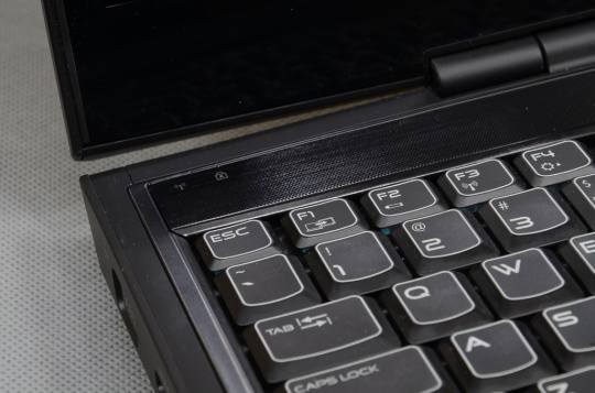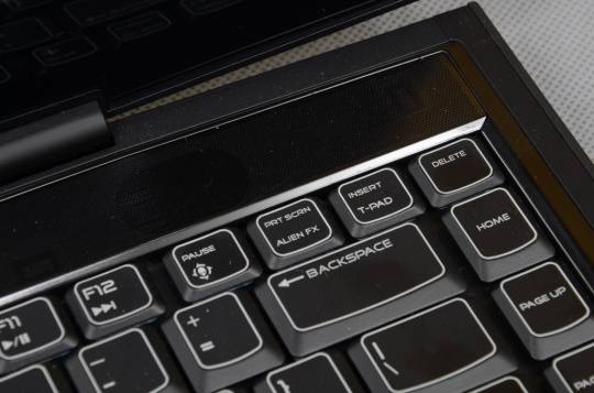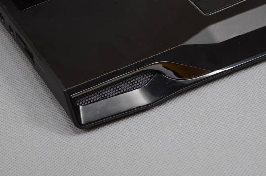 外星人笔记本前脸键盘两侧有两个类似“车灯”的设计,该设计与笔记本边缘弧线让人联想到跑车的前脸。