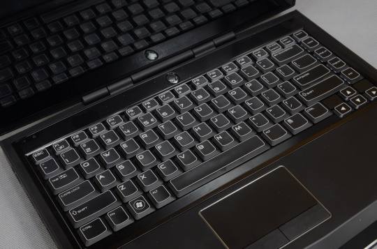 作为一款游戏本,笔记本还是比较厚实的,更大的空间使得笔记本散热更好。ALIENWARE M14XR2采用全尺寸标准键盘,按键手感非常不错。