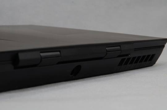 Alienware M14XR2后部仅在中间设计了一个电源接口。散热出风口也在后部。