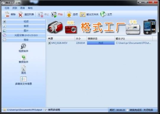 我们使用Alienware M14XR2进行转格式,测试结果来看,可以说毫无压力,仅花费23秒完成格式的转换。