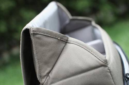 针对于这款包的防护性,小编感觉这款单肩包还是可以有效保护器材的。之前说过这款包的外观材质很耐磨而且防水性也不错。主要包的内衬采用了较厚的材料,可以有效地抵消冲击对器材的伤害。