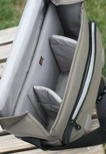 下面我们具体来看看乐摄宝Event messenger250 单肩背包的存贮空间吧。我们打开包的搭扣以后,呈现在我们眼前的是一个拥有三层收纳层的结构。