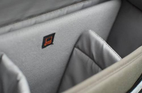 从图中我们可能看到,最里面有一个收纳笔记本电脑的夹层,小编尝试把自己的14寸电脑放进去,发现虽然可以塞进去,但还是有点费劲的。这个夹层收纳14寸以下的电脑应该没有任何问题。