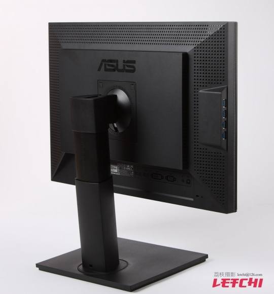 再来看看背面。华硕PA248Q 显示器的升降功能很赞,只需轻轻一按或轻轻一提就轻松搞定,屏幕角度的调节更是不在话下。值得一提的是,屏幕边框、底座转盘以及屏幕与支架连接处的转盘都有刻度,让机器的每一个动作更加精确可识别,方便下次快速设置到自己想要的状态。不能不说华硕为专业用户想得很周到。