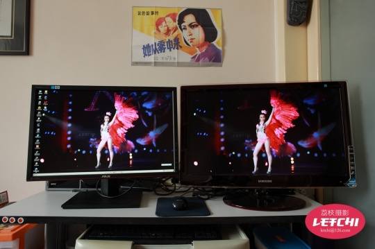 如图,左为华硕PA248Q,右为三星SyncMaster P2770,显示相同的桌布。我的观感是,华硕PA248Q亮度更高,显示更清晰(跟尺寸小有一定关系),颜色显示更准确,但是对比度偏高。相比之下,三星SyncMaster P2770显示的颜色整体偏黄一点,但也很鲜艳悦目,作为家用多媒体显示器还是很优秀的。