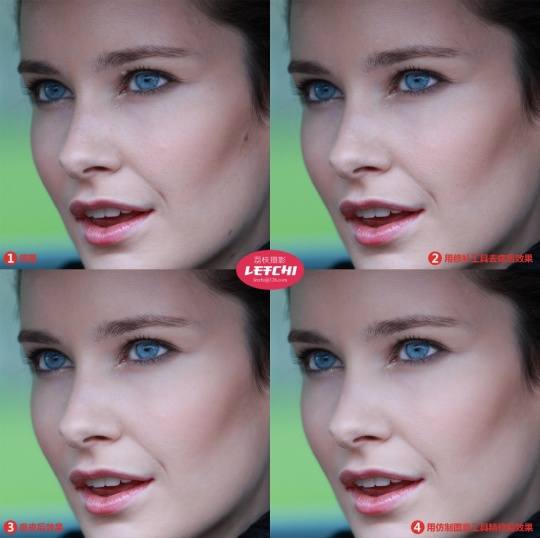 皮肤,应该修掉非标志性的痣、痘、溃疡、伤疤、爆皮、色素沉着,以及化妆不够匀的地方。
