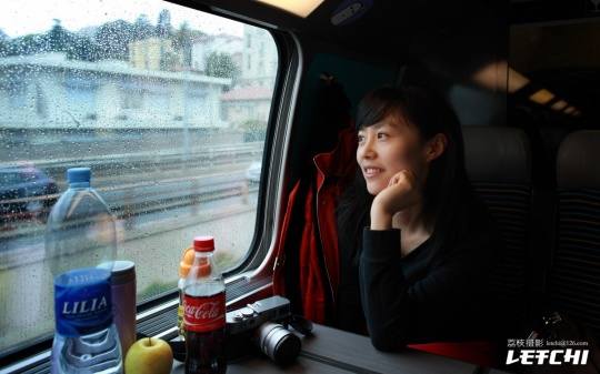 这张片子是今年年初在尼斯至巴黎的TGV 列车上抓拍的,模特是我爱人。拍摄参数如图,使用自动白平衡,人像模式。在华硕PA248Q上看,显然偏红了。