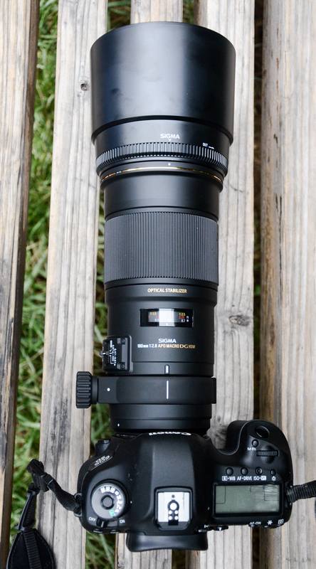 DG EX 180/2.8 APO MACRO OS HSM搭配佳能EOS 5D Mark III,我们看到这颗镜头整体还是很威猛的,重量也达到了1640g,长时间手持还是很考验臂力的。
