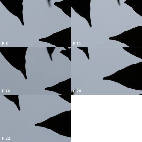在F8-F22这几档光圈中,无论是焦点位置边缘还是焦外树叶的边缘均没有出现紫边,可以说这只镜头对紫边的控制是相当的好,这三片FLD镜片起到了决定性的作用,功不可没。