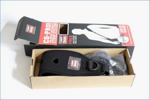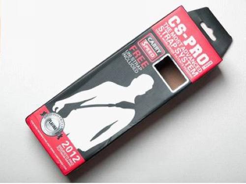 这款背带包装盒上印刷的型号叫CS-PRO markII,而包装盒后面贴上去的中文标签上写的是CS-1pro,并有“升级底板”字样,从这里我们可以推测:1)产品的型号名称在国外和国内有区别;2)可能存在旧款的型号,区别主要是底板不同。通过访问生产商网站(美国休斯顿,www.carryspeed.com)和国内代理商网站(中国广州,www.ggs020.com)证实了这两个推测。同时也从代理商网站上了解到快摄背带目前一共有4款供选购,而这款CS-1pro是肩垫最宽,附件最齐全的PRO(专业)款。