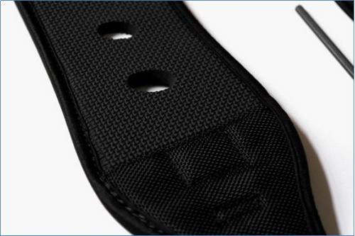 肩垫的背面。有防滑凹纹。上面有5个大孔,减轻重量和跑汗。