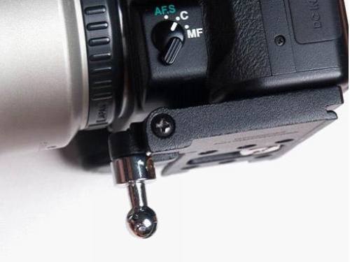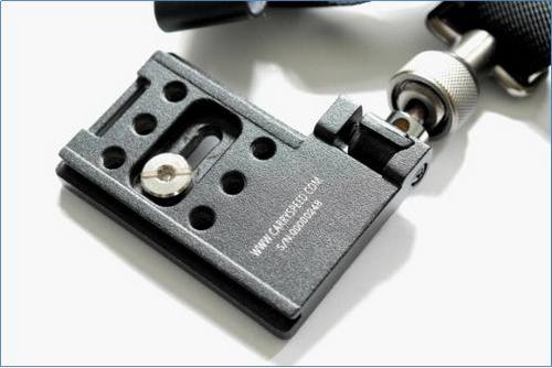 球头连接件后面是一个塑料卡子,它的作用是限制相机滑动的区域,这样即使没有用手扶住相机,即使有稍微激烈的活动,相机也不会跑到我们不希望的地方去。