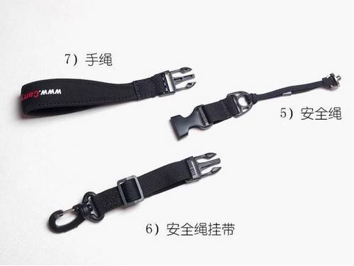 这两张图是安全绳和手带的连接。按照说明,这个挂带既可以用于作平衡机身镜头,也可以和腕带合用来做小DC的腕带。有用的设计。