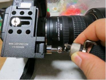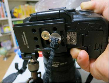这个是在挂长焦镜头时,用来拧在机身三脚架孔的挂带。这样垫板固定在长焦镜头上,这个挂带挂在机身,起平衡作用。