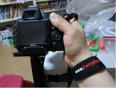 装完背带后发现微调滑扣、长度调节装置等设计精妙方便,调节长度、携带相机和快速开拍安全而又迅捷,可惜老婆孩子都睡觉了,模特没有,只好容后再战了。睡觉前再把腕带试用一下,左右手互拍,我容易吗?