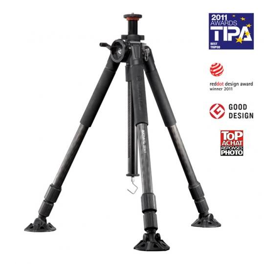 这款虽然是碳纤维脚架,但绝非大家常见轻便型产品,这款产品更为注重稳定性,支腿为三节,直径可达32mm,伸展高度可达到1800mm,标准伸展高度也能达到1450mm。