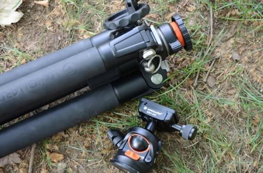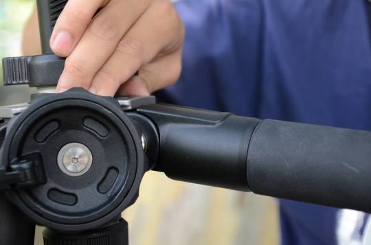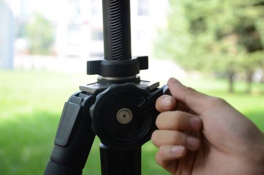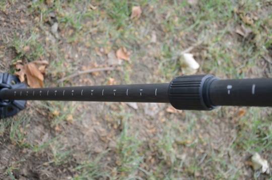 我们可以看到这款脚架的脚管上具有刻度,这对于要精确调节高度的用户是非常必要的。