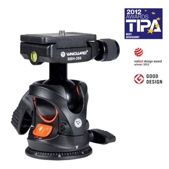 那么一款脚架需要搭配云台来衔接器材,本次我们搭载的是Vanguard精嘉的BBH-200球形云台,该云台也获得了TIPA 2012的奖项。Vanguard精嘉BBH 系列为旗下顶级专业球形云台系列。