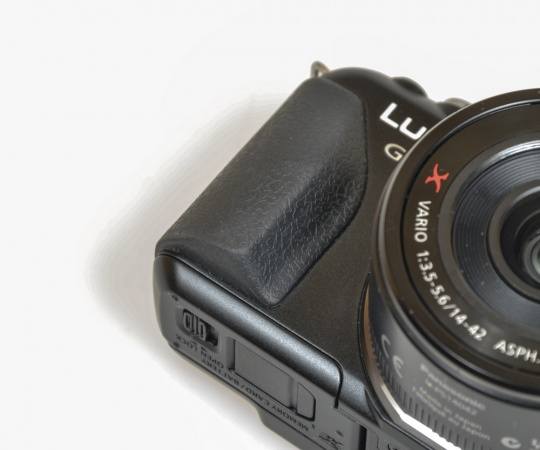 和GF3不一样的地方在于此次GF5将类似GX1的手柄融入进来,这样的握持感更好点,实际情况来看胶皮手感还不错。