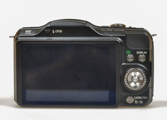 我们拿到的版本是沉稳的黑色,整体造型与GX1非常类似,此次搭配的镜头是14-42电动变焦镜头,该镜头小巧且画质还不错,放进口袋正合适。至于顶部的圆弧设计则继承了GF3的外观设计。