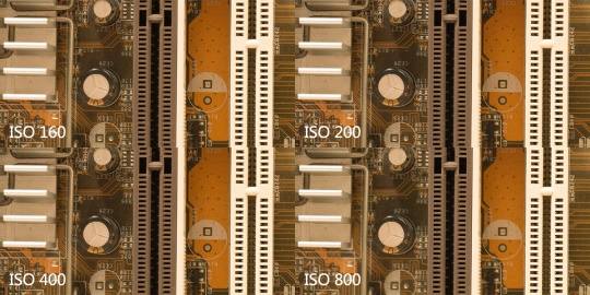 这张图标注的是ISO160-800的各档感光度。点击放大可以看出, 这几档的感光度表现都非常的好,这也是我们户外拍摄经常用到的感光度范围,画面质感和细节度都呈现的相对细腻,只是GF5的感光度仍然从ISO160开始仍然让人不理解,不过影响不大。