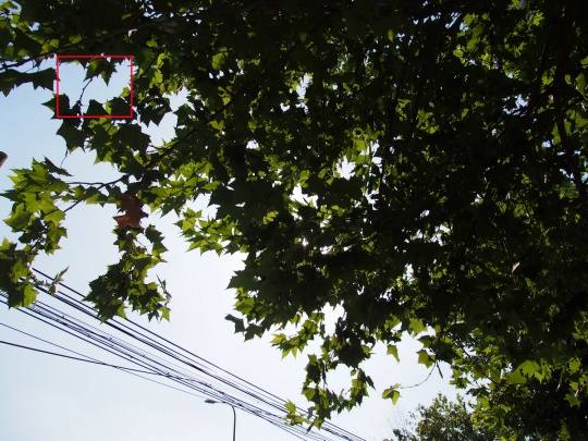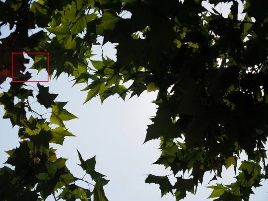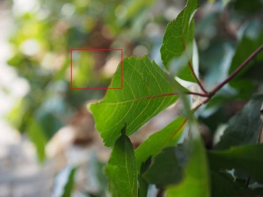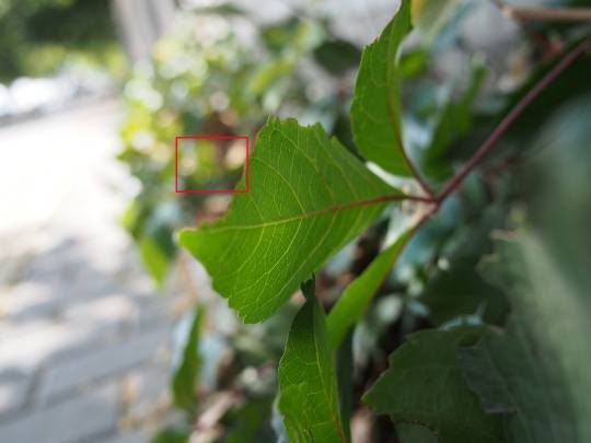 大光比逆光下,我们观察一下叶片明暗交接部分。从图中可以看到这款镜头的紫边还是存在的,但并不明显。