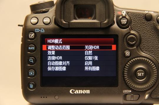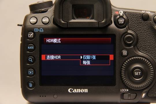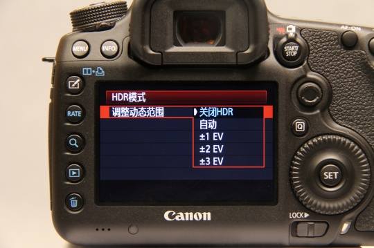 HDR(High Dynamic Range)拍摄模式是指通过数码处理补偿明暗差、拍摄具有高动态范围的照片表现方法。EOS 5D Mark III可以将曝光不足、标准曝光、曝光过度的3张图像在相机内合成,拍出高光溢出和暗部缺失少的图像。一般是针对明暗差大的场景比较有效,但拍摄低对比度(阴天等)的场景也能够强化阴影等而得到戏剧性的视觉效果。选择HDR模式可以将动态范围设为自动、±1EV、±2EV或±3EV。