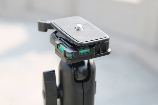 快装板特写,此快装板依然没有过多的防滑设计。同时我们看到此云台配备了两个水平仪,一个参考水平,一个参考竖直。