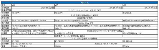 自2010年8月索尼首次将“半透镜”(Translucent Mirror Technology)技术使用在单电相机α55/α33上。去年,索尼又推出α33升级版α35,以及两款中端机型α77/α65。而α55一直没有更新,直到α57出现!(当然也会有人认为α65就是α55升级版,但我们要注意3、5、6、7是为代表系列的数字)下面我们不妨将α65、α55以及本文中α57规格上进行对比。