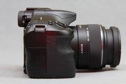 相比α55/α33的“老”造型,α65/α57的流线型造型更显专业,“老”造型三围为约124.4×92×84.7mm,而α65/α57的机身为约132.1×97.5× 80.7mm,体积上几乎大了一圈。手柄更大更厚握持手感也有所提升。