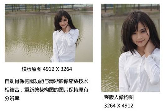 4.清晰影像缩放技术和自动肖像构图两个功能方便智能
