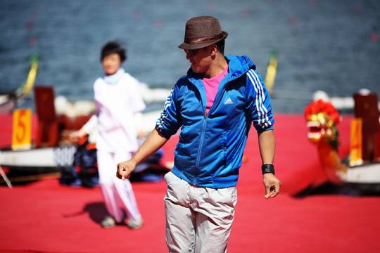 前几天参加的一次客户组织的活动,舞龙和划龙舟的,教练在带领大家热身~镜头是135L