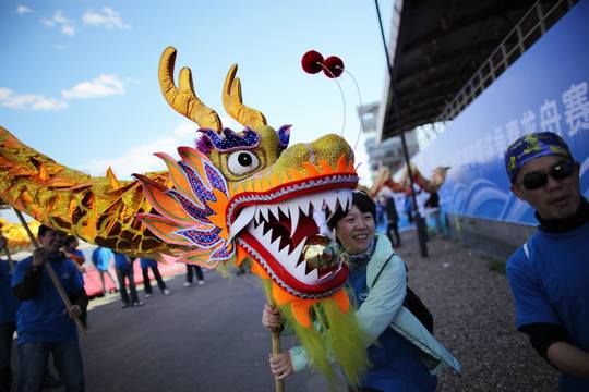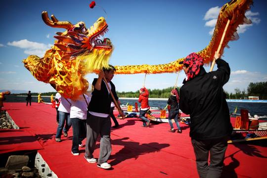 舞龙的比赛,我们被分成几支队伍,切磋一下舞龙的技艺~