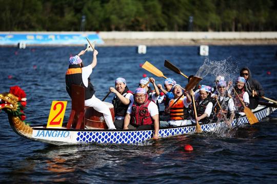 划龙舟,这只队伍获胜了~135L真心不够长啊,所以没有拍到比赛的画面,只拍到“王者归来”~