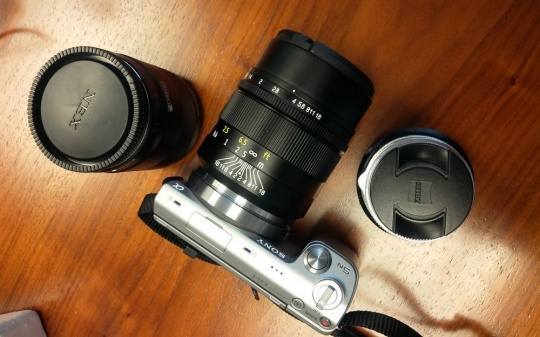 收到镜头后,拆开包装,发现这个镜头可以说是相当的重,680克,尽管个头不大,重量完全是单反镜头的水平,握在手里十分的扎实。此头放在5N上绝对是头重脚轻,即便放到NEX 7上,尽管还没试,我想也同样是头重脚轻。至于做工,也许是我开始的期望值太低,此头手感大大的超过了我的预期。镜头的用料非常扎实,没有一点松垮的感觉,变焦环和光圈环都很顺滑,但是阻尼比E24和ZM 35 2都大一些,也很顺手。对焦行程比较长,对于手动头精确调焦拍照来说,是很方便的,但是对于视频,也许对焦行程更短一些比较好,这个还需要进一步测试。