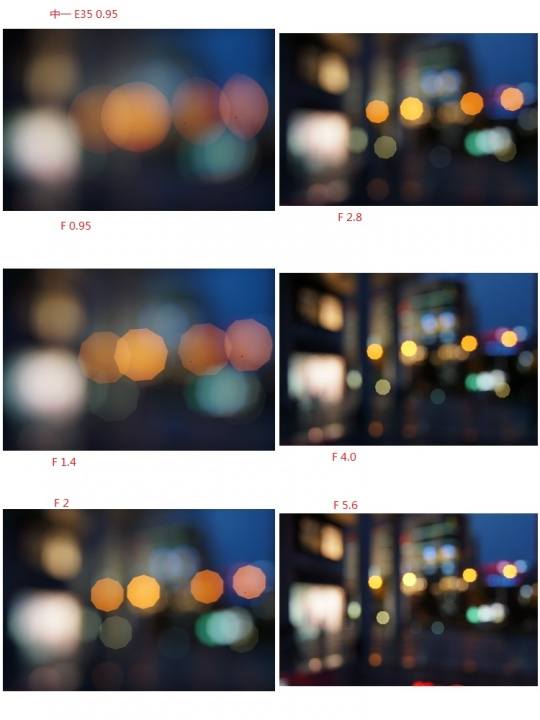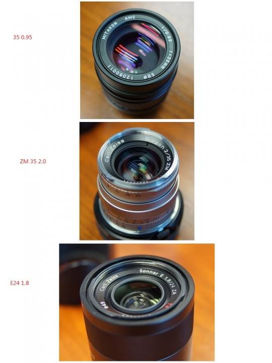 下面是35 0.95,ZM35, E24三个头在相同的相机设置下拍摄的效果。
