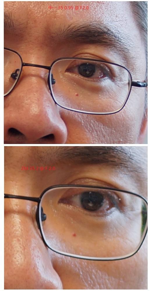 难道是中一的35 0.95把光圈标错了?觉得不太可能。但是说蔡司标错了,估计就更不可能了。